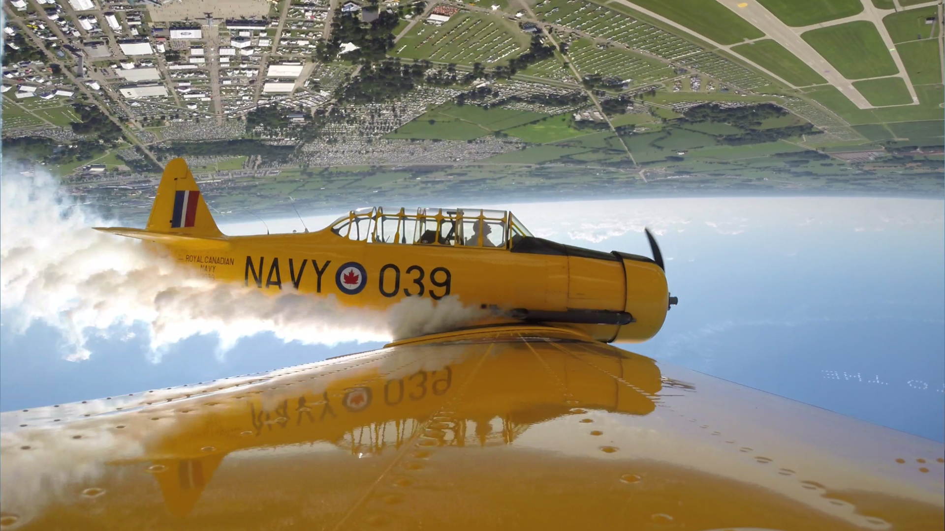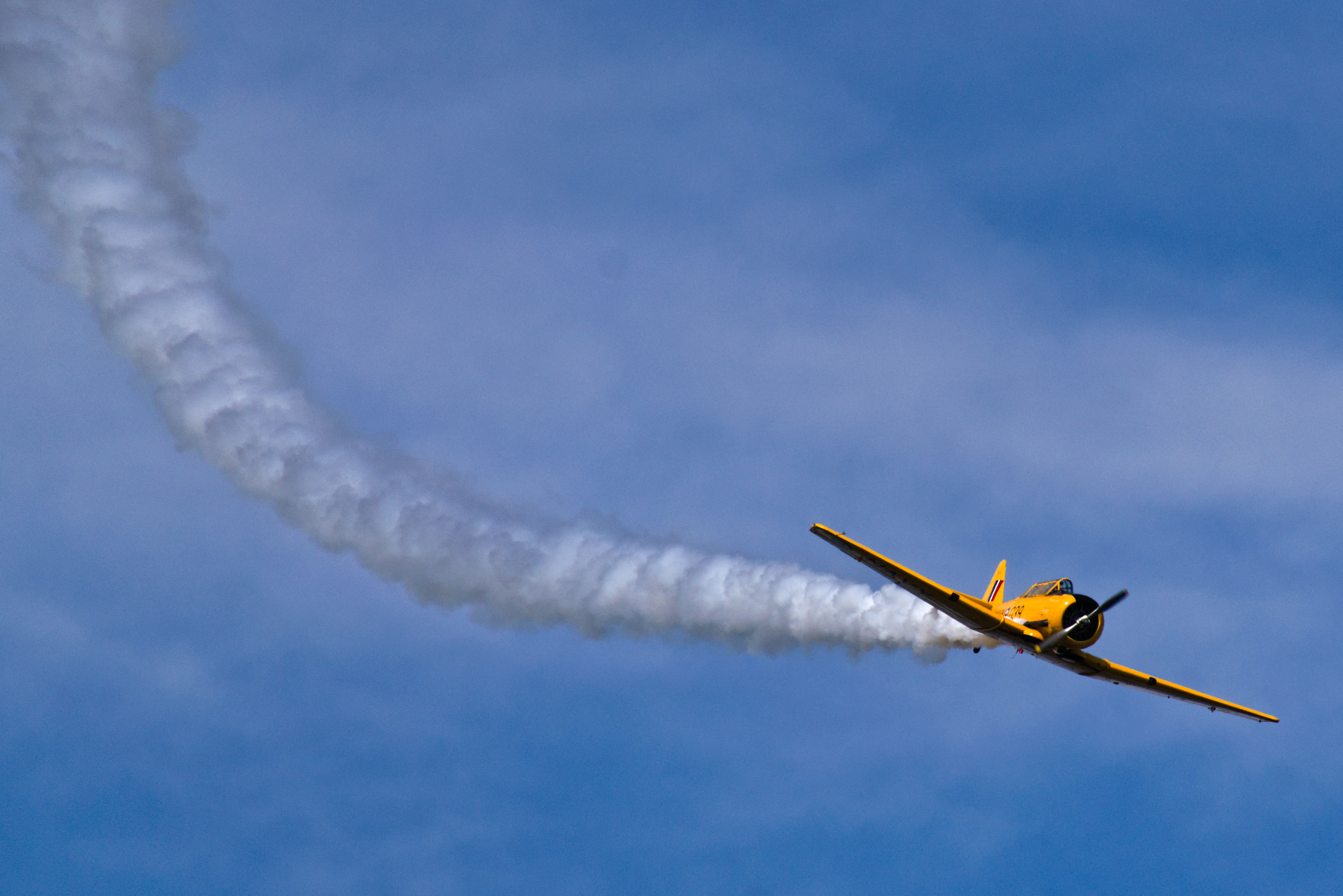 Watch the harvard soar high into loops and rolls.